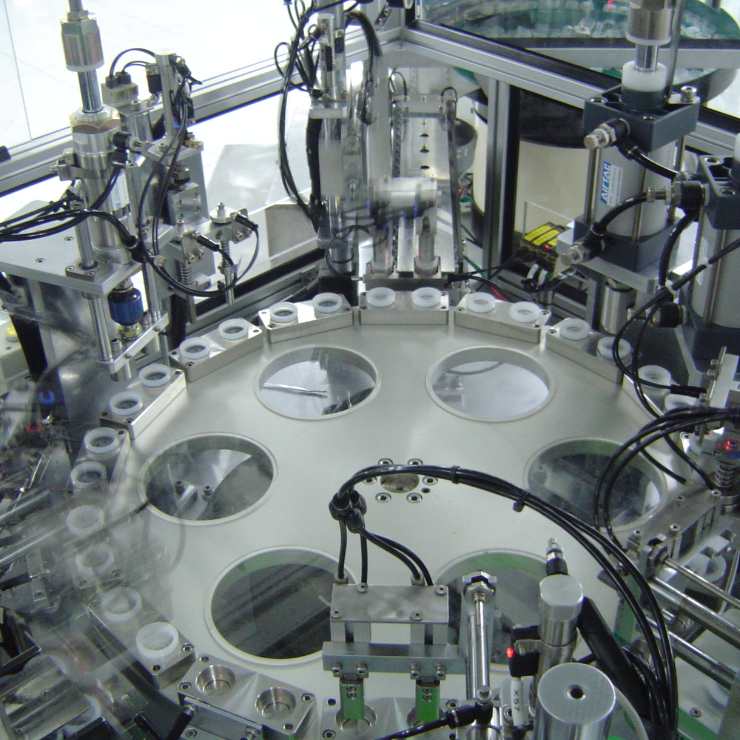 крышканажимаетсяс помощью серво-связанной стержневой структурной системы, с равномерными стабильнымдавлением в каждой позициина каждойрабочейстанции, качество прессования каждой крышкиможет быть гарантировано. 6. Каждый процесс сборки